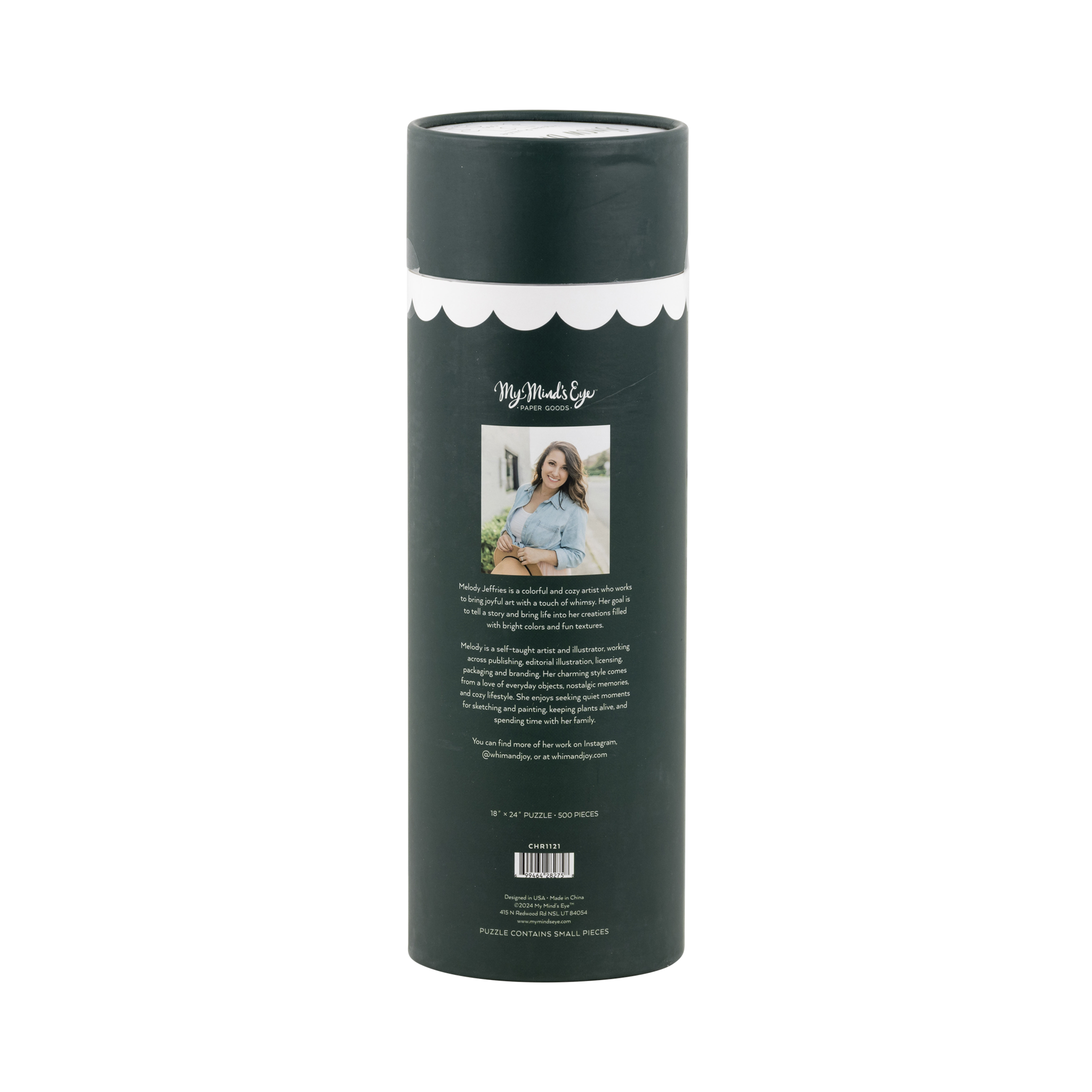 Get ready to skate into the holiday spirit with our Snow Day Winter Puzzle! Featuring a charming winter scene of skating on the canal, this puzzle is perfect for cozying up on a snowy day. Piece by piece, watch the scene come to life and bring joy to your winter days. Featured artwork from Melody Jeffries * chipboard jigsaw puzzle * 500 pieces * finished puzzle size is 18" x 24"