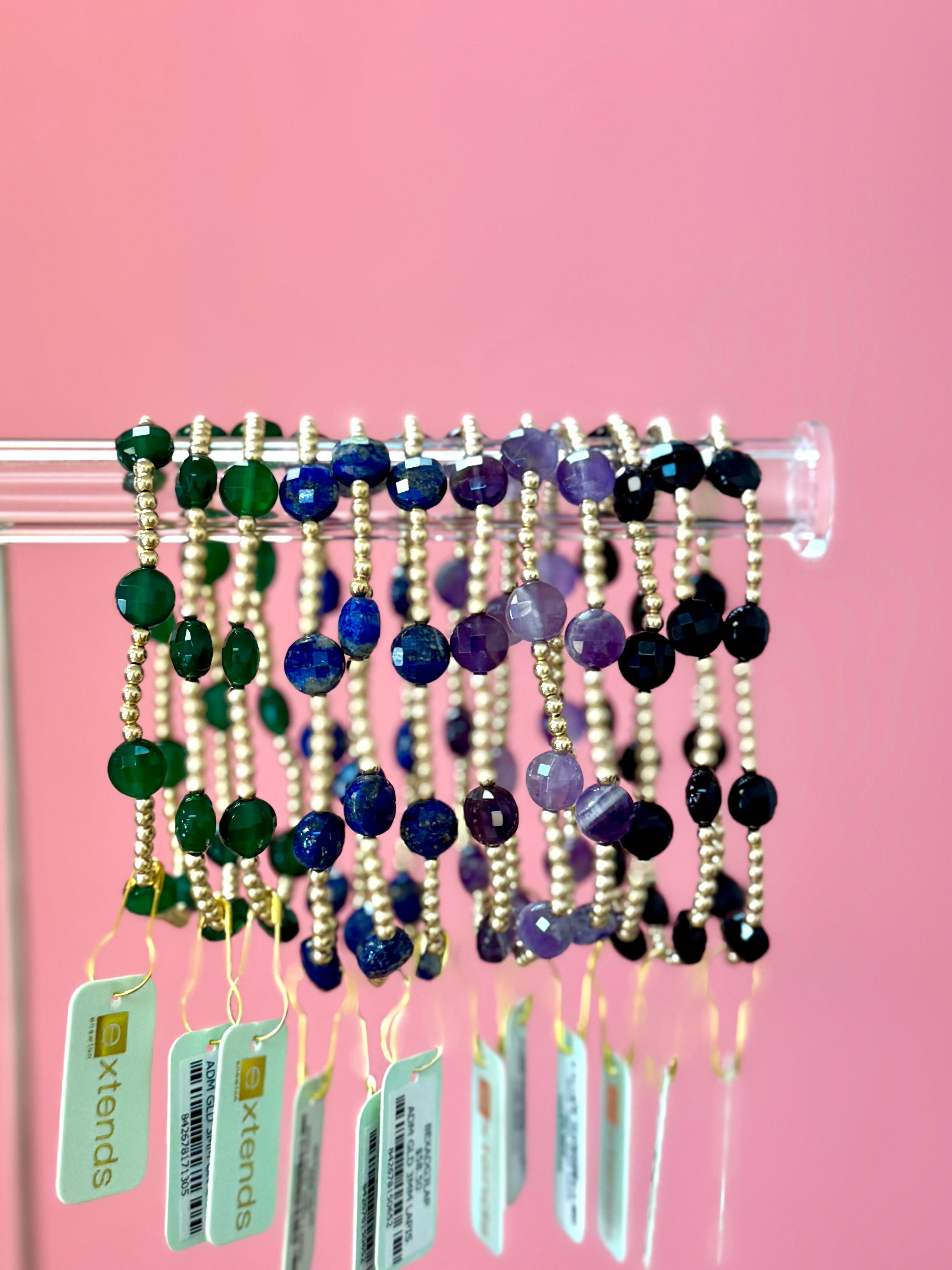 - Hand beaded on high performance elastic for a slight stretch to easily roll on and off your wrist