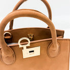 Crossbody Handbag Nubuck Tote Velvet Texture Tan Brown Camel