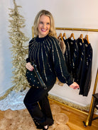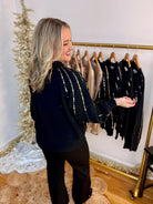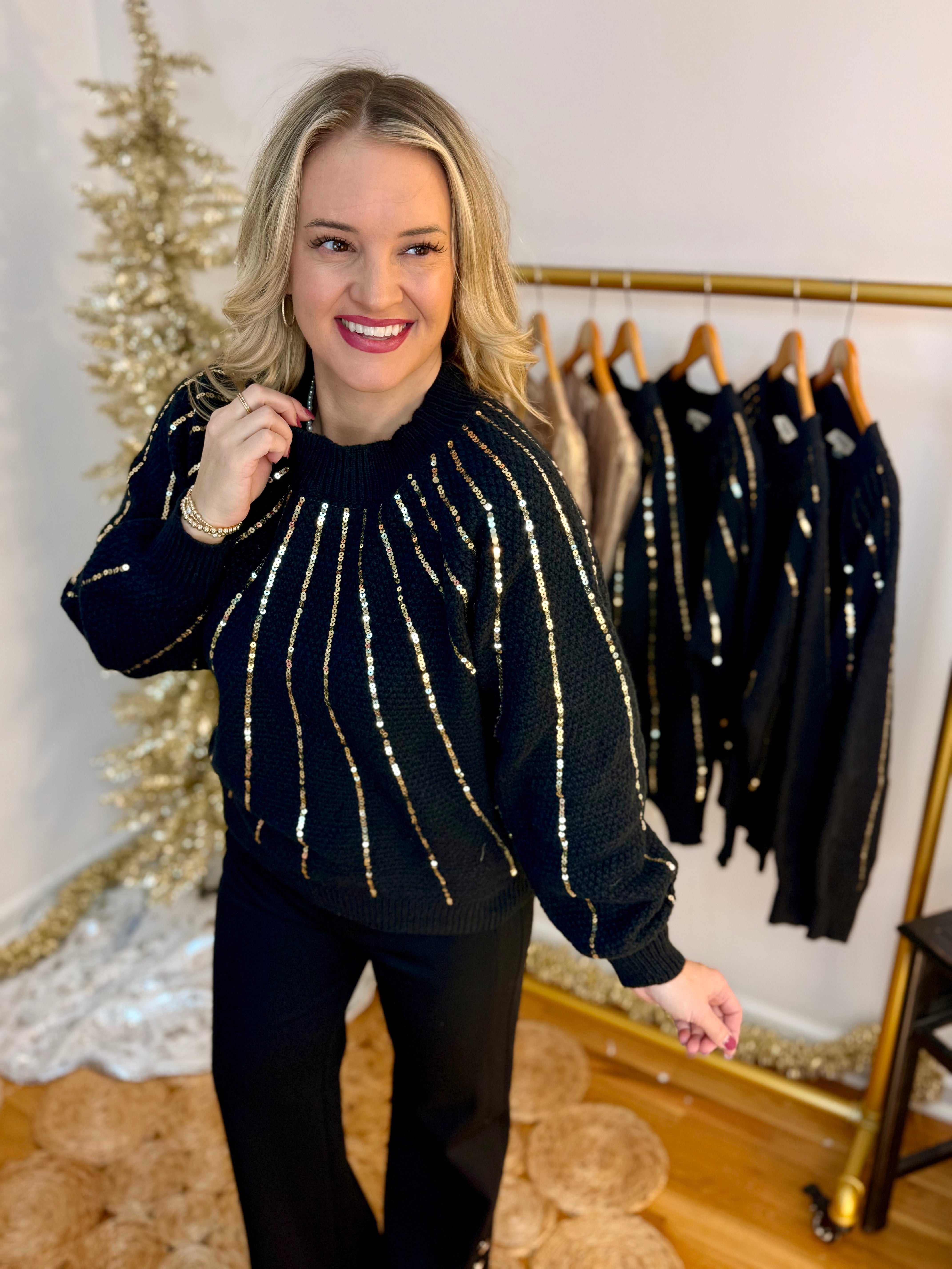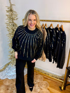 Boutique Style Holiday Christmas Date Night Black Gold Sweater