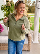 Boutique Pullover Hood Front Pocket Relaxed Fit Olive Green