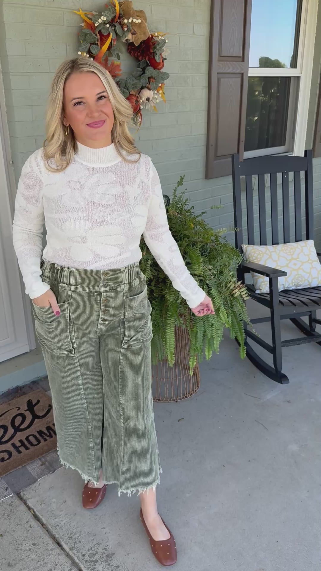 Add a touch of effortless elegance with the Harvest Moon Floral Jacquard Top in Ivory featuring a delicate knit pattern that evokes vintage charm. Perfect for layering under dresses or tops, this soft, lightweight knit sweater brings cozy sophistication to any outfit.